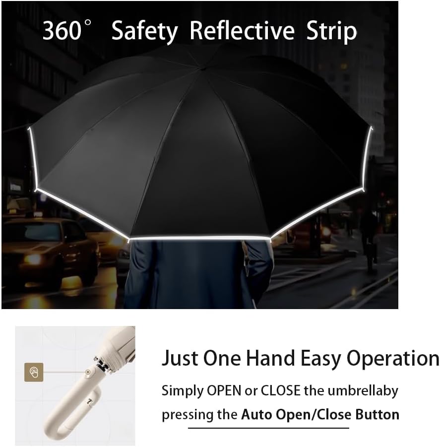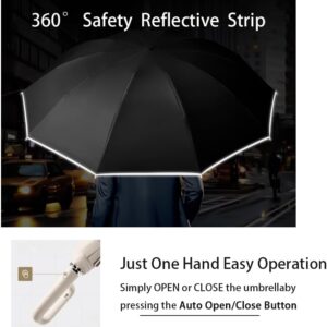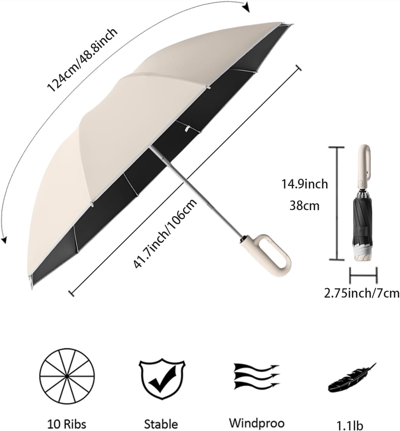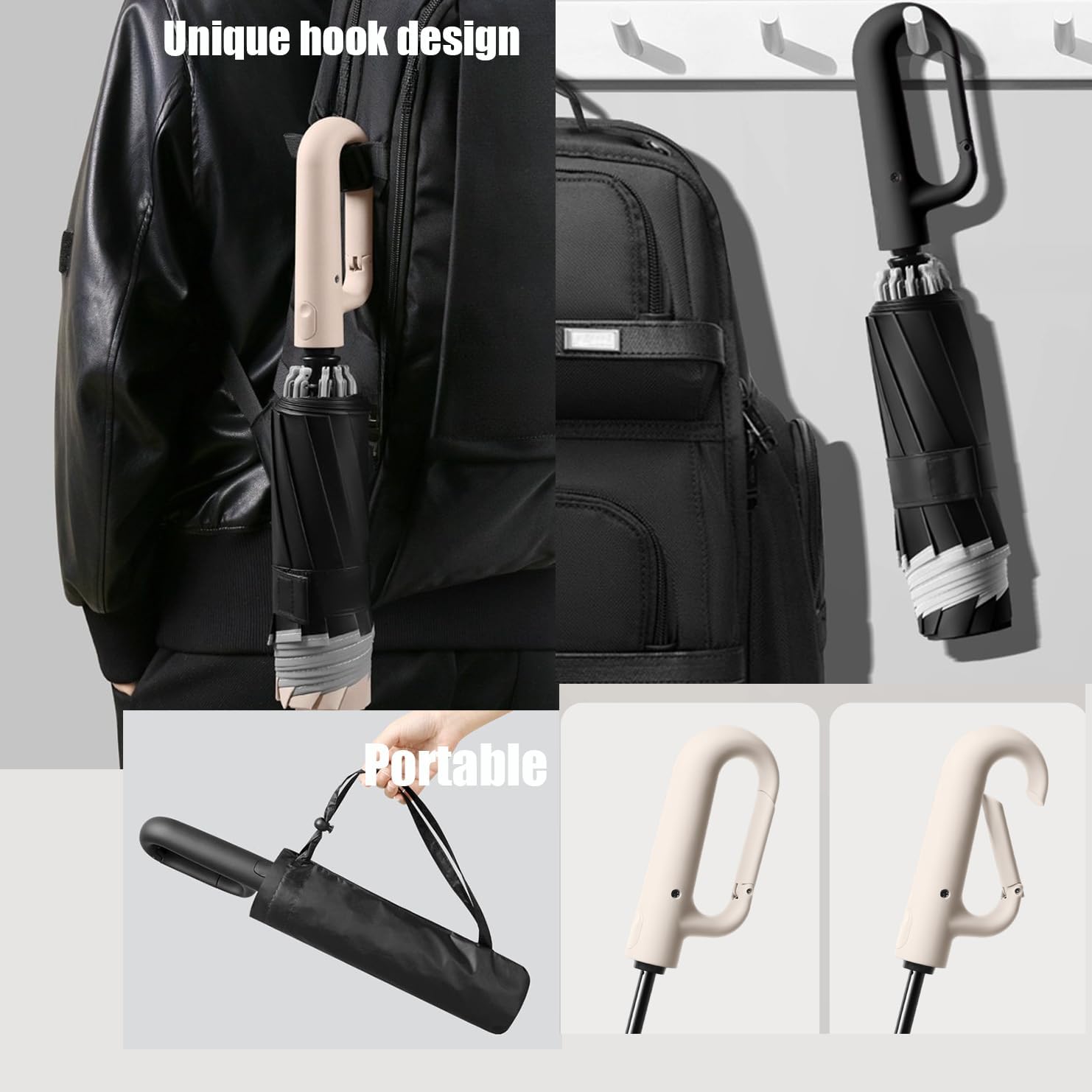 Inverted Reverse Golf Umbrella 10 Ribs Travel Folding Lightweight Compact Portable Backpack Outdoor,Sun/Rain,Anti 99 UV Protection UPF 50, Automatic Open/Close,Men Women Carabiner Handle Design