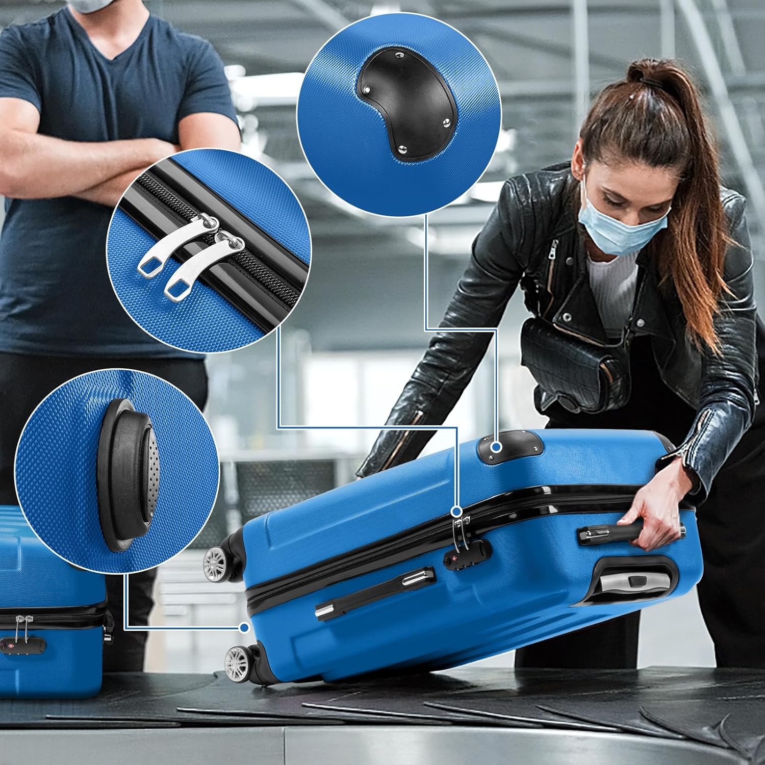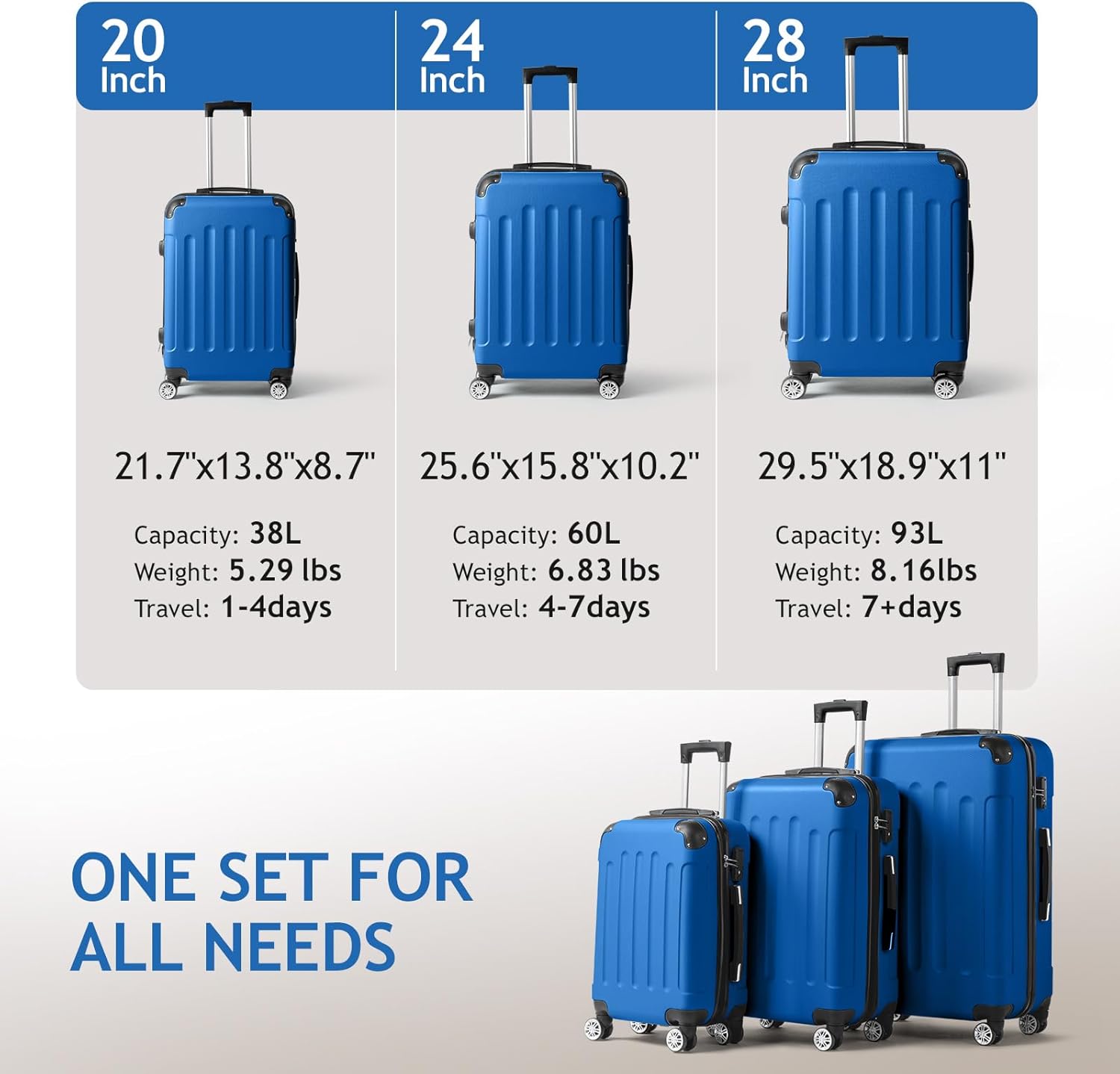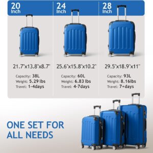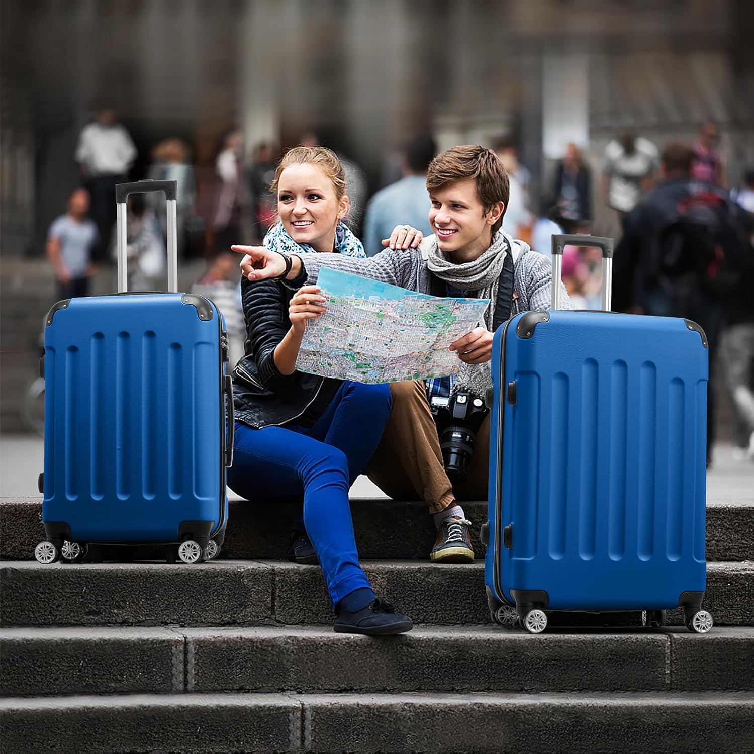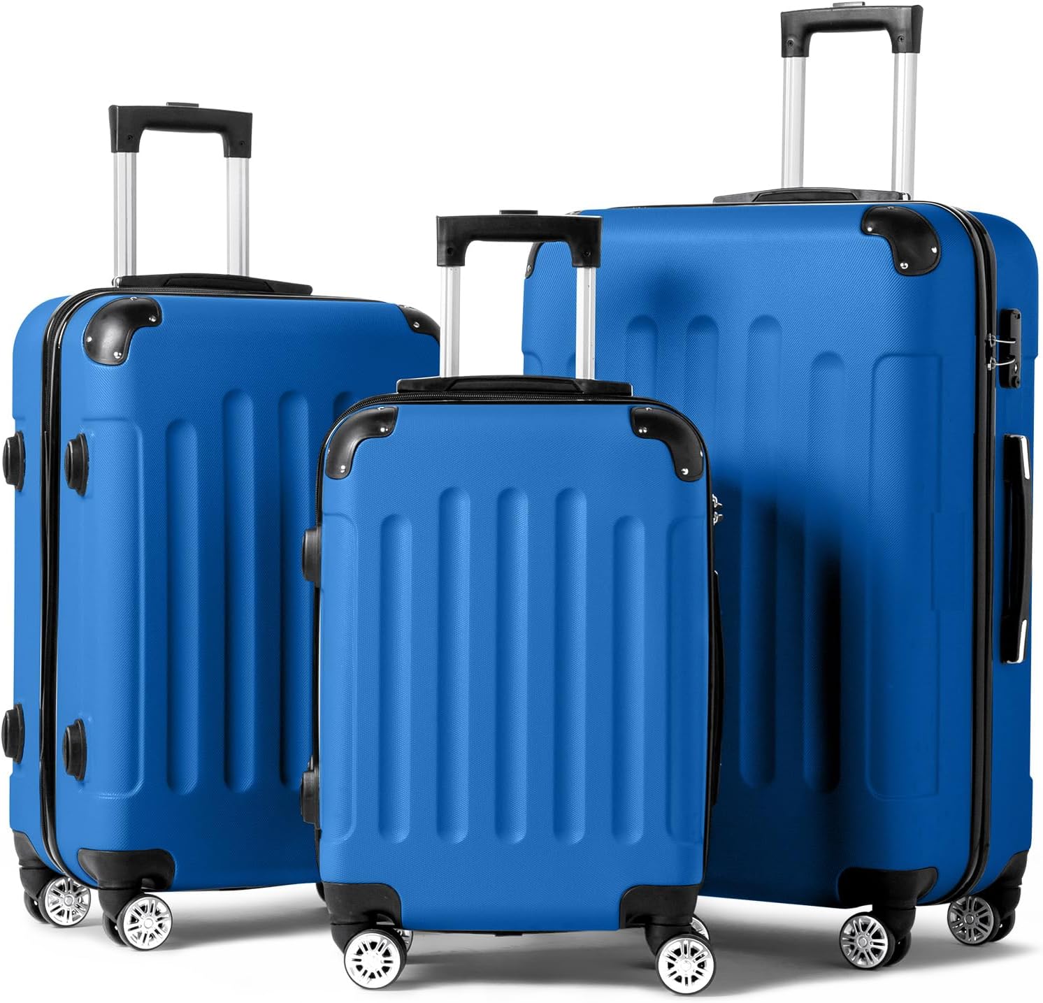 Karl home 3-Piece Luggage Set Travel Lightweight Suitcases with Rolling Wheels, TSA lock & Moulded Corner, Carry on Luggages for Business, Trip, Dark Blue (20″/24″/28″)