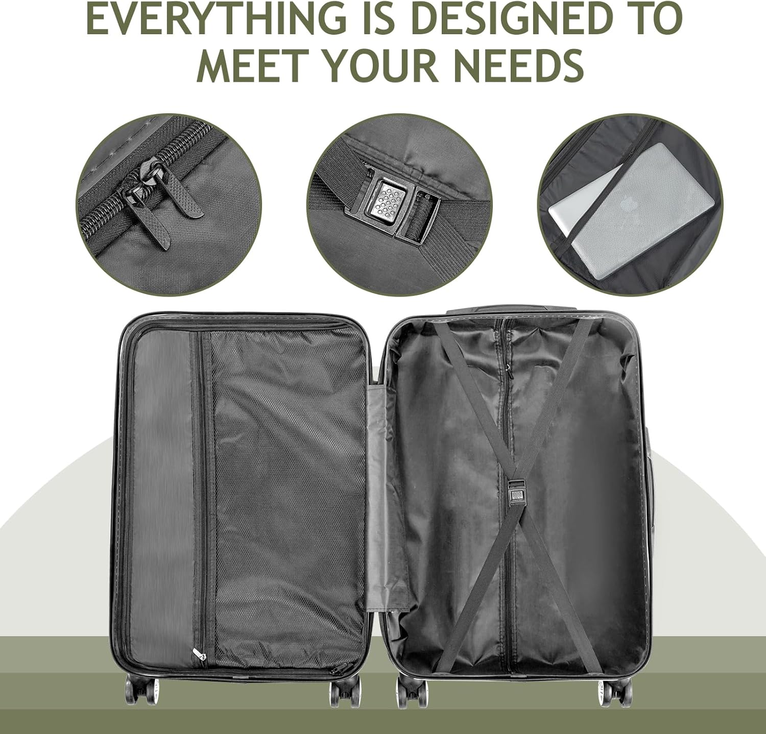 【Organized & Spacious】With two large compartments, a mesh zippered compartment, and cross straps, our luggage set provides ample storage and organization for your clothes, shoes, and other essentials