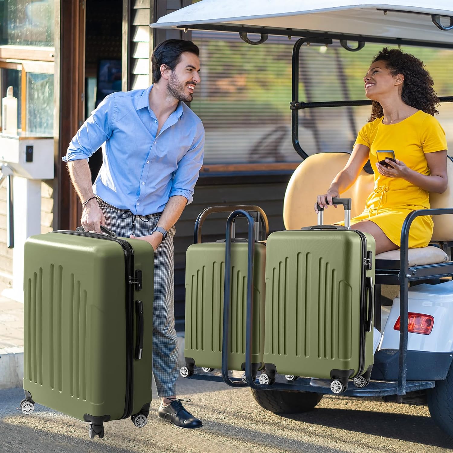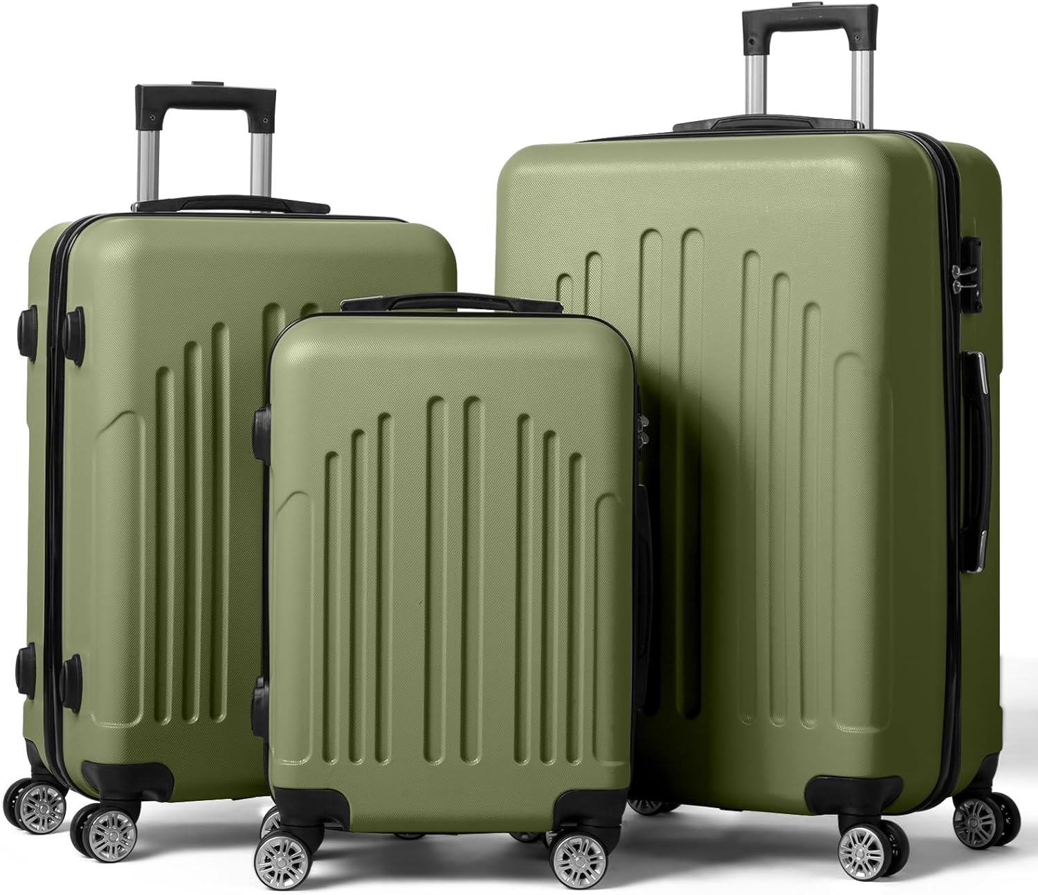 Karl home Luggage Set of 3 Hardside Suitcase Sets with TSA Lock 4 Spinner Wheels, ABS Lightweight Trolley Travel Case for Carry On Check-in Business Trip, Green (20/24/28)