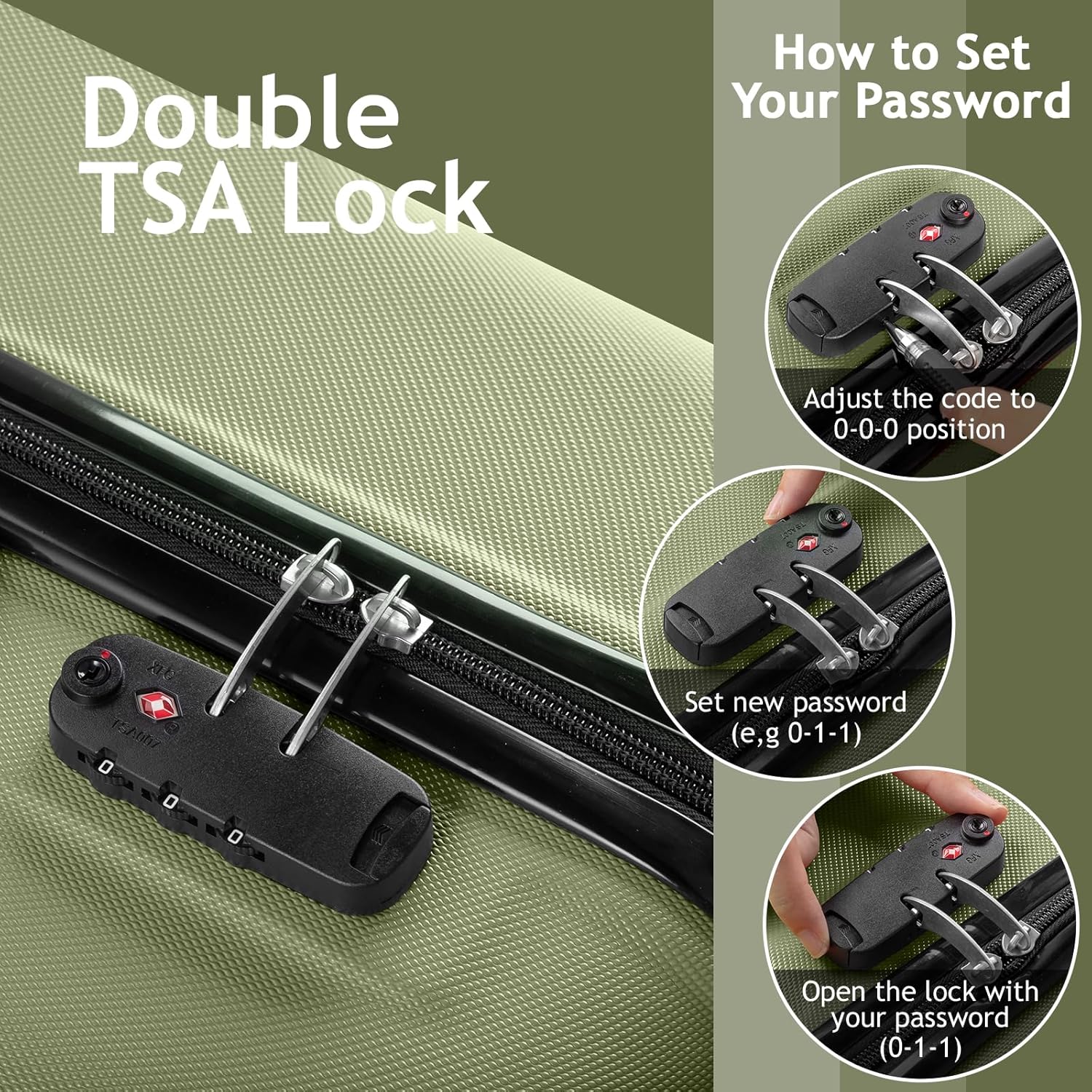 【TSA Lock】Features a TSA combination lock on the side, ensuring your belongings are safe and secure during your travels. Additionally, 4 molded side feet that allow you to store it upright when needed