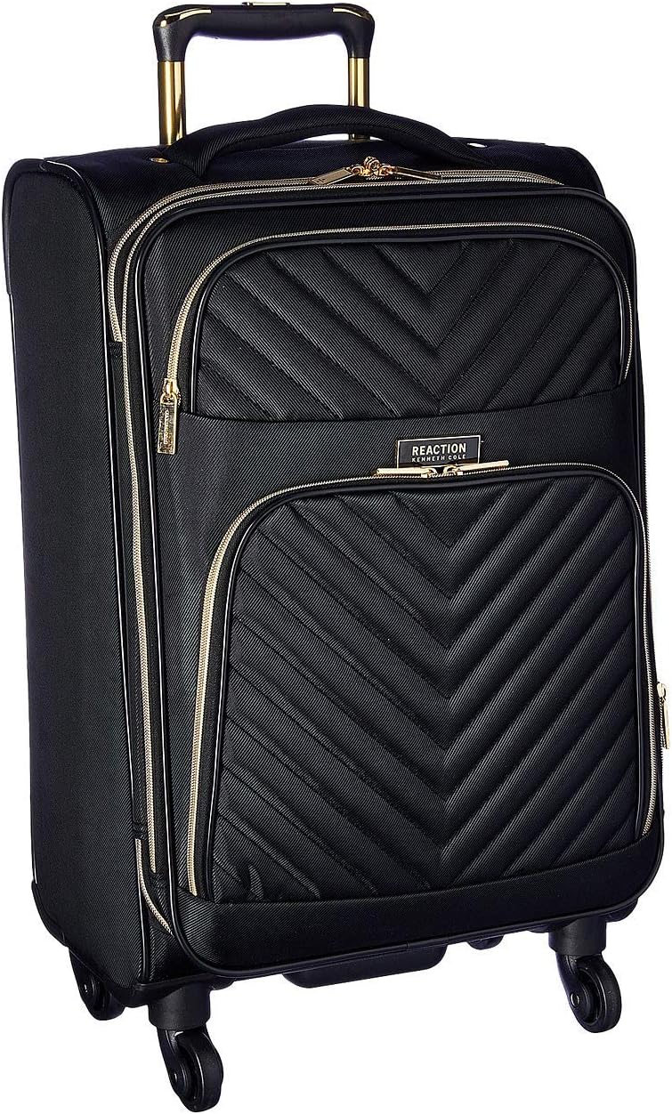 Designed for the trendy, modern business women whom value both style and function, This 2-piece set from the Kenneth Cole Reaction “Chelsea” collection features a 20” carry-on suitcase and a travel laptop backpack. Luggage features multi-directional 8-wheel spinners that allow smooth, 360°-degree movement over any rough surface for complete mobility free-weight rolling. Lightweight construction helps you adhere to airline weight restrictions to avoid unneeded airport fees. Expands an additional 1.5-inches for greater carrying capacity when needed. Both bags feature a stylish Polyester-twill quilted chevron exterior and fully lined tear-resistant interior. Main interior compartment of luggage features side zipper pockets, secure garment restraints to hold belongings, and interior lid section with a full-length mesh zipper pocket for double sided packing. Front exterior of luggage features dual zipper compartments for easily accessible items. Luggage features a sturdy, locking retractable push-button telescopic trolley handle that extends 41 inches and is conductive for simple, one-handed use. Backpack features a separate rear padded computer compartment that fits most laptops up to 15-Inch screen. Roomy, main compartment includes a smaller padded laptop/tablet pocket and 2 open top accessory pockets. Front exterior of backpack features a zipper pocket for easy access to frequently needed items and zip around pocket with an extensive business organizer. Rear exterior features padded shoulder straps for maximum comfort while on the move. Both the suitcase and backpack features premium self-repairing gold coil zippers meant for long lasting use. The backpack exterior features dual side exterior open top beverage/holster pockets. Rear of backpack also features a trolley strap that fits over most luggage upright handles for hands-free carrying. 20” carry-on suitcase designed to meet U.S. based airline carry-on size requirements and fits into most airline overhead bin compartments. The perfect women’s travel backpack and carry-on suitcase for mindful fashion forward commuters. ★ 20” Exterior Luggage Dimensions: 22” H x 13” L x 9”-10.5” D ★ 20” Interior Luggage Dimensions: 20” H x 12” L x 8.5”- 10” D. ★ Luggage Weight: 6.9 lbs. ★ Backpack Overall Size: 16” H x 11” W x 7.5” D. ★ Backpack Computer Dimensions: 15.25” H x 10” W x 1.75” D. ★ Backpack Weight: 2.15 lbs. ★ Backed by a manufacturer’s lifetime limited guarantee against defects and craftsmanship. ★