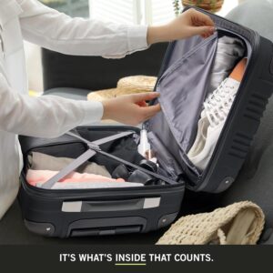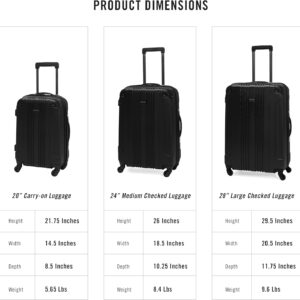 The Kenneth Cole Reaction Out of Bounds luggage collection is designed for the modern adventurer. Crafted with durability in mind, the ABS exterior and molded corner guards make this luggage bash and bump ready. Its lightweight design ensures easy lifting when it is fully packed. Maneuver effortlessly through the airport or city streets with the 4-wheel 360-degree spinners. Lifting your luggage is a breeze with the flexible top and side grab handles. The retractable trolley handle ensures smooth, one-handed navigation through the airport. Say goodbye to your travel worries and hello to seamless exploration. Backed by a manufacturer’s lifetime limited warranty. Dimensions: 20-Inch: 21.75” H x 14.5” W x 8.5” D. 20-Inch Weight: 6 lbs. | 24-Inch: 26” H x 18.5” W x 10.25” D. 24-Inch Weight: 8.5 lbs. | 28-Inch: 29.5” H x 20.5” W x 11.75” D. 28-Inch Weight: 9.5 lbs. Pack More Into Life with the Out of Bounds Collection.