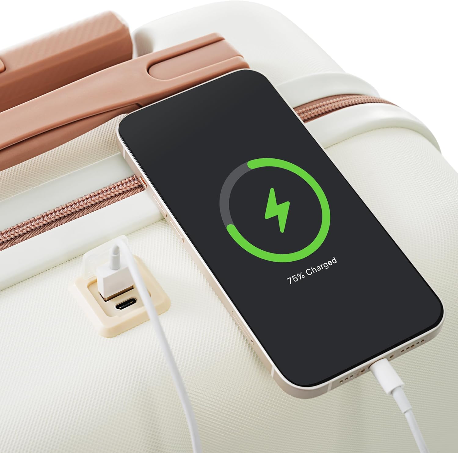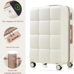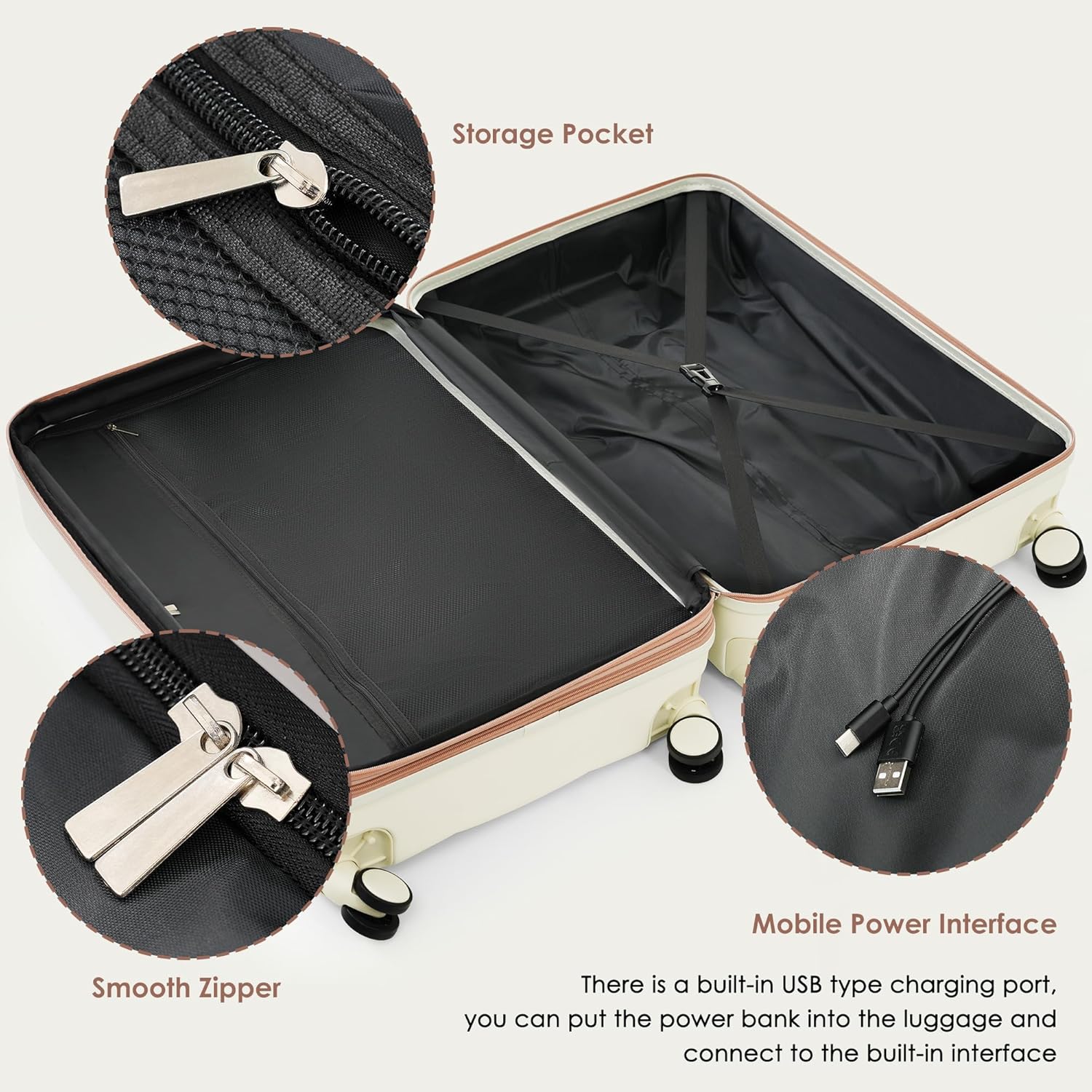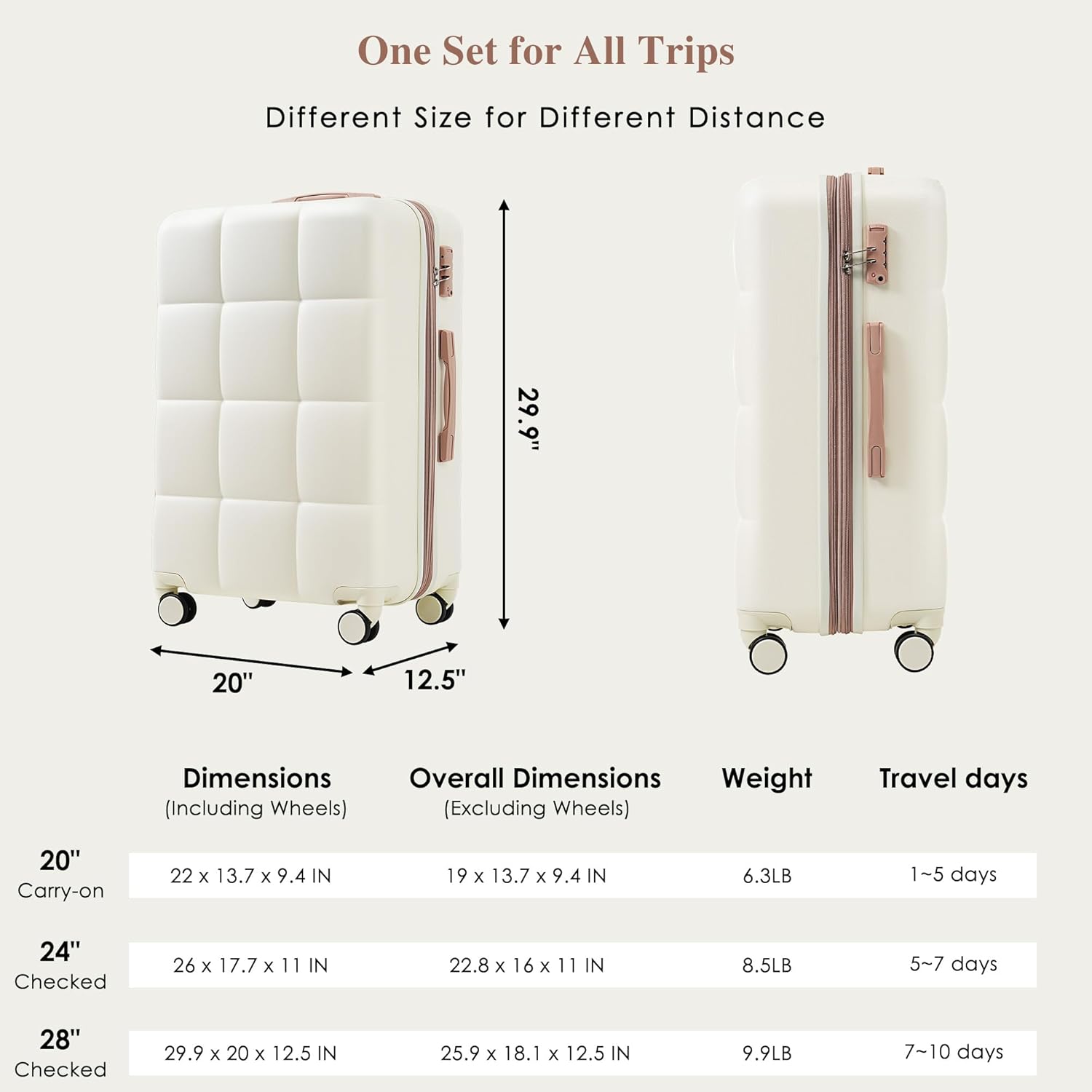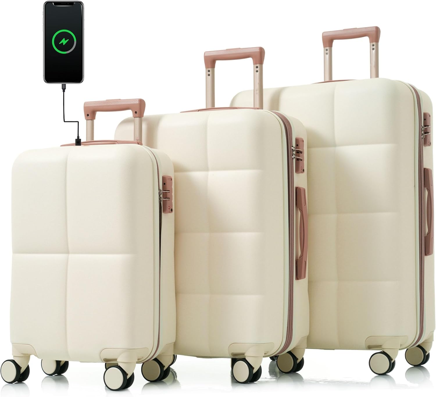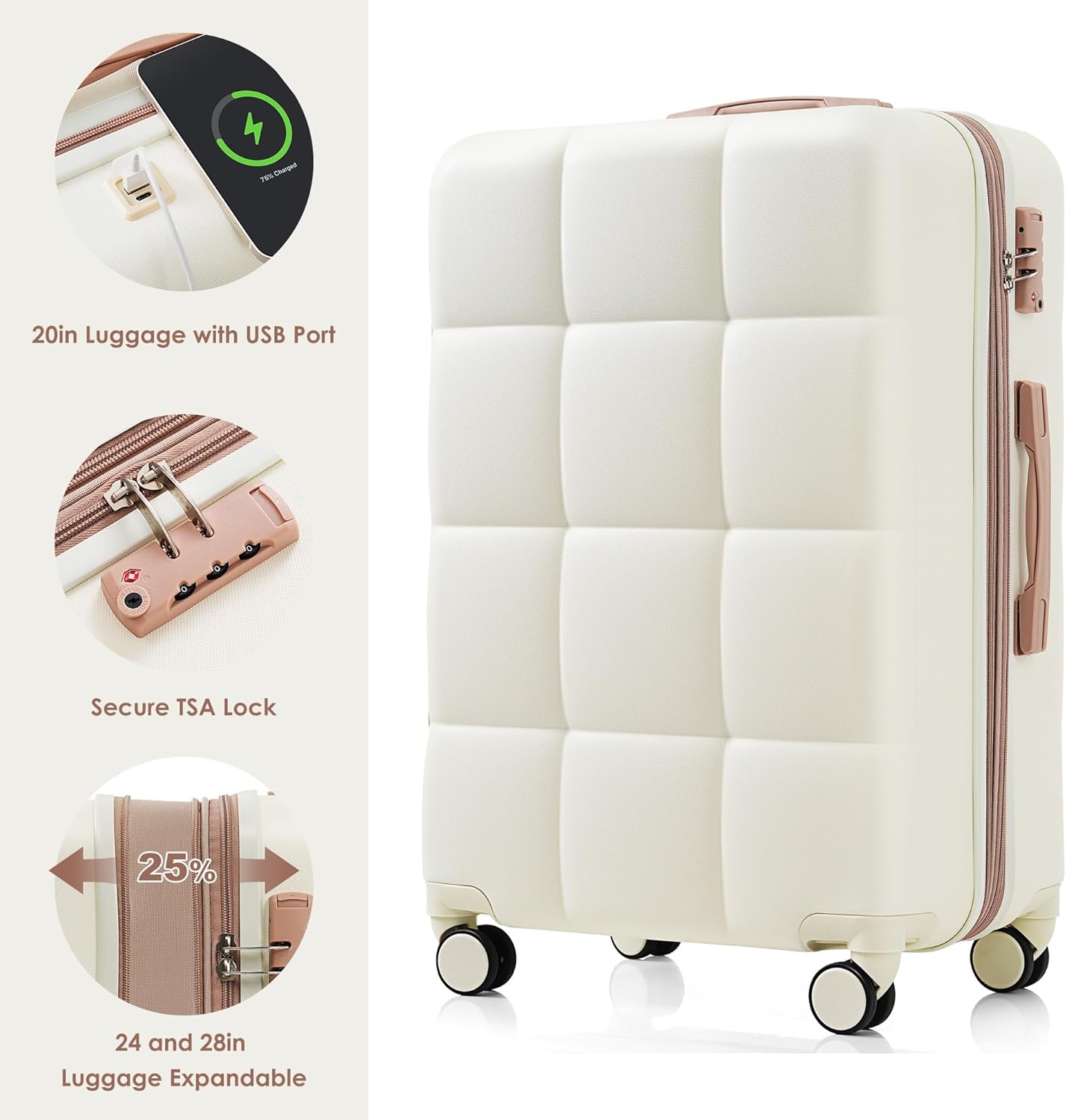 Merax Women with TSA Lock Hardshell Luggage Sets, Cream White, 20/24/28 Inch