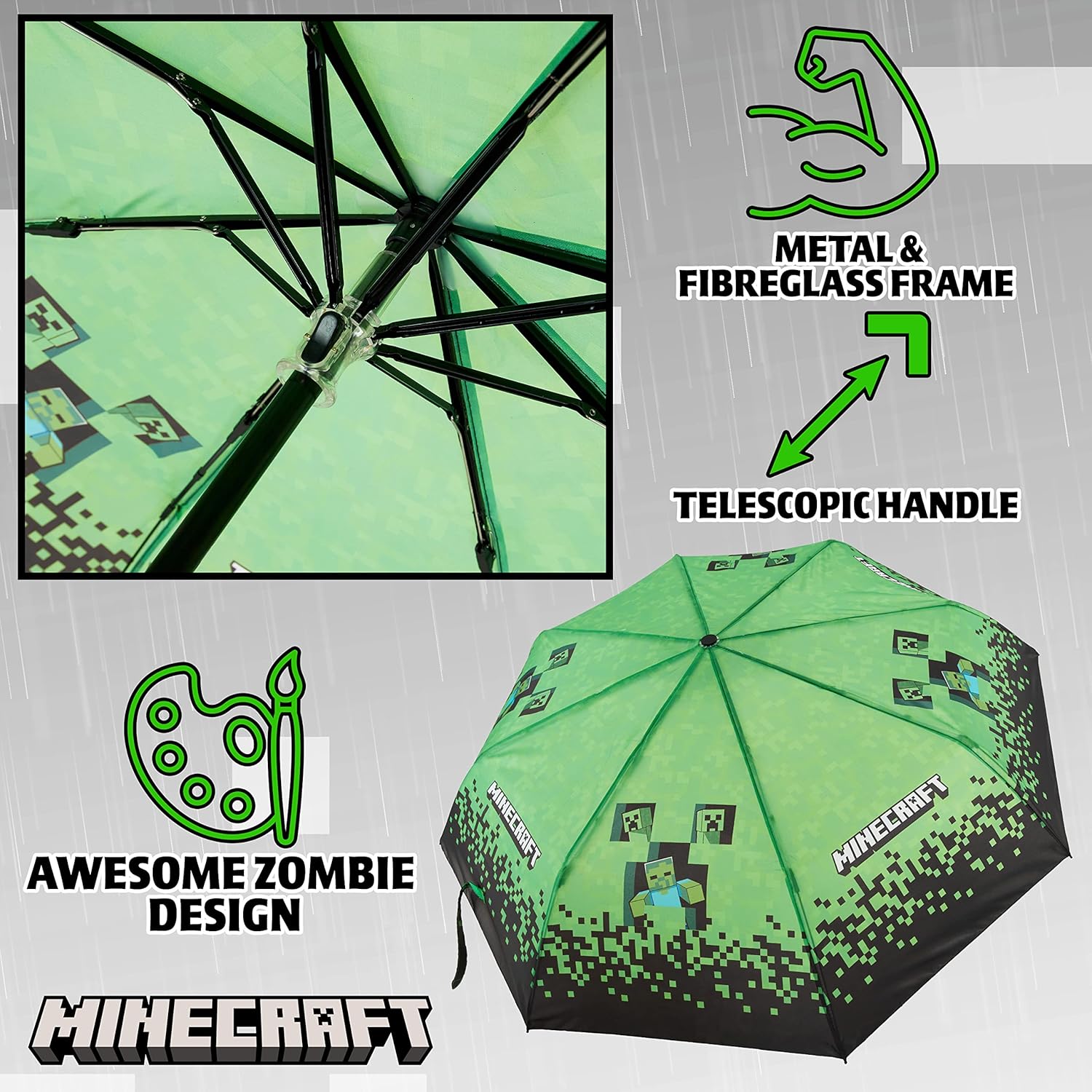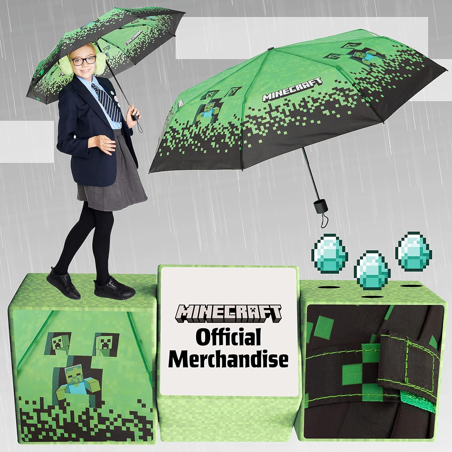 Make rainy days fun with the Minecraft boys and girls umbrella! Featuring vibrant Minecraft graphics, this portable umbrella is perfect for fans of the game. Lightweight and easy to carry, it’s ideal for travel, outdoor adventures, or daily use. Fits easily in bags, keeping you prepared and stylish on any rainy day. Check out the images for more details!