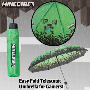 Minecraft Folding Umbrellas for Boys Girls Durable Compact Umbrella Windproof Travel Umbrella for Teens and Gamers