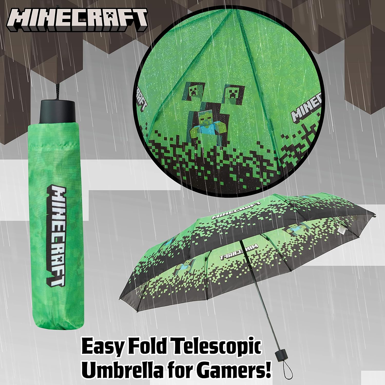 Be the first to review “Minecraft Folding Umbrellas for Boys Girls Durable Compact Umbrella Windproof Travel Umbrella for Teens and Gamers” Cancel reply