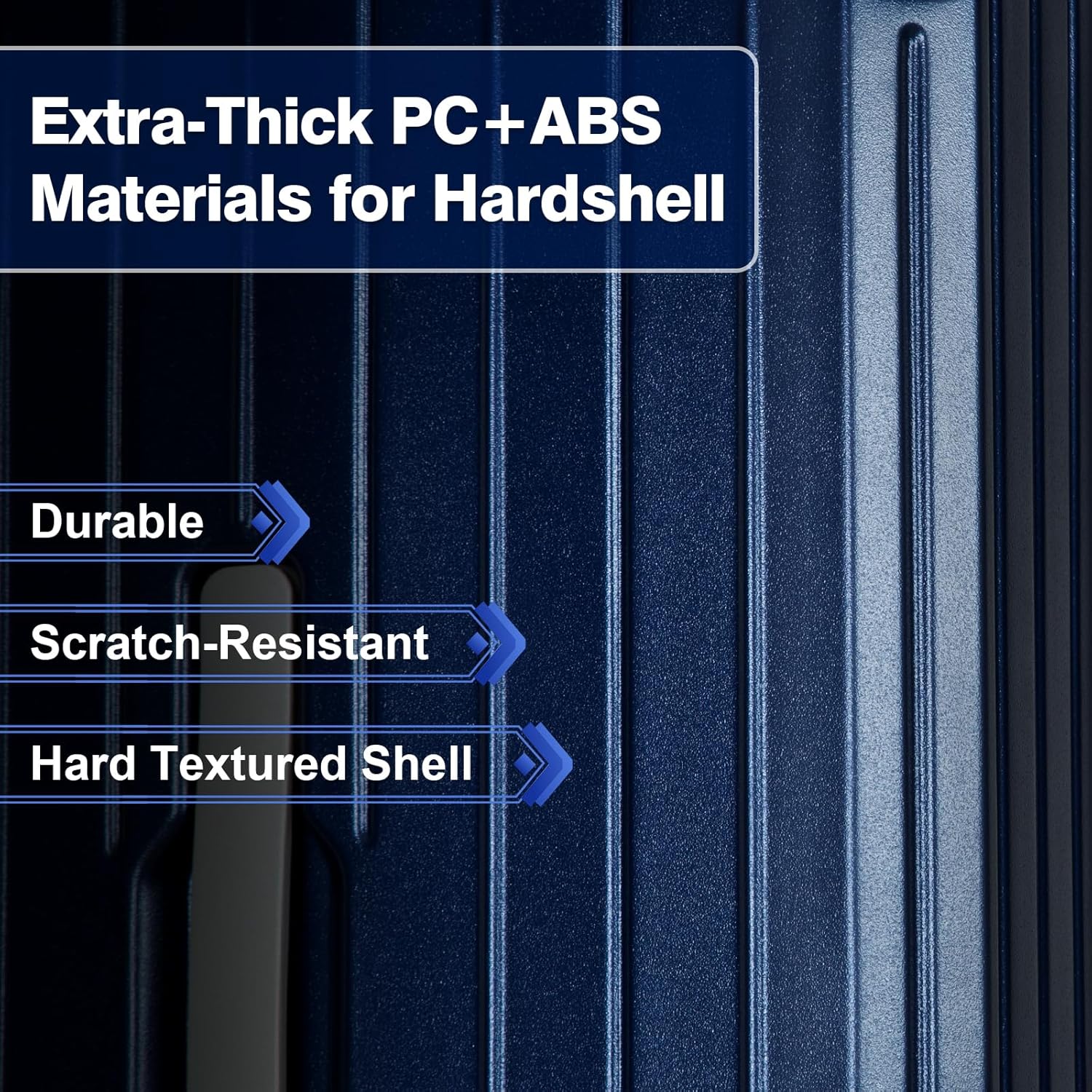 【High Quality Luggage Set】Made of extra-thick PC+ABS materials for hardshell, which make the luggage more durable,impact-resistant and lighter. The reinforced hardshell resists impacts, while the textured finish protects against scratches, keeping cases beautiful after a trip.The 20″/28” suitcase also features a cup holder, allowing you to carry drinks hands-free