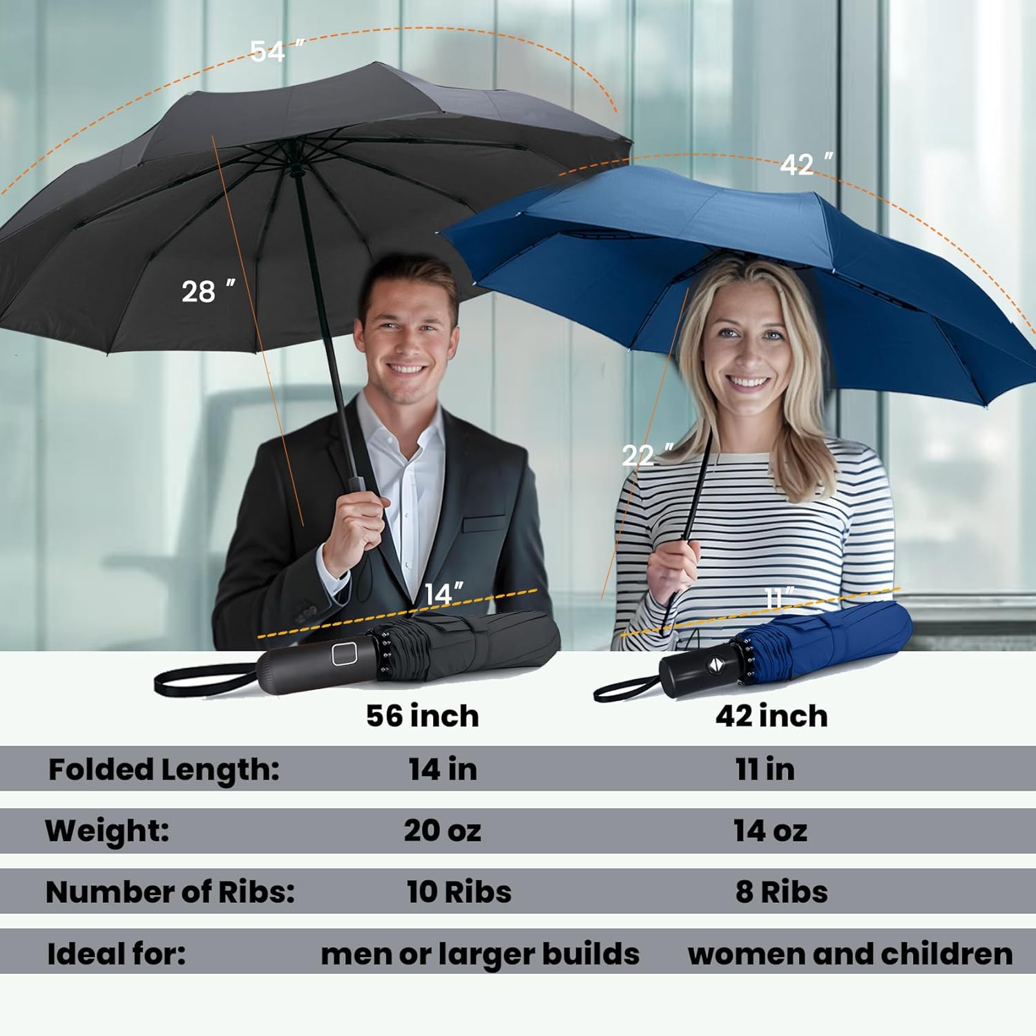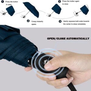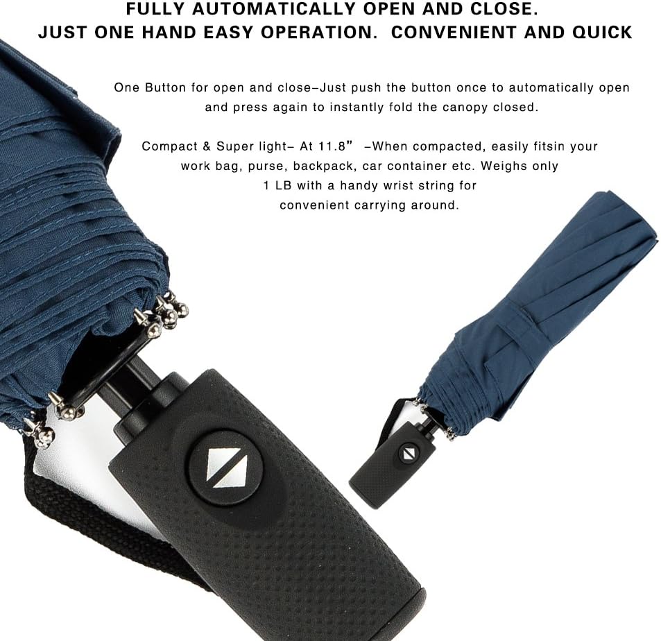 Upgraded Automatic Umbrella- Easy one hand operation with one auto open & close button, simply touch it to expand or collapse;